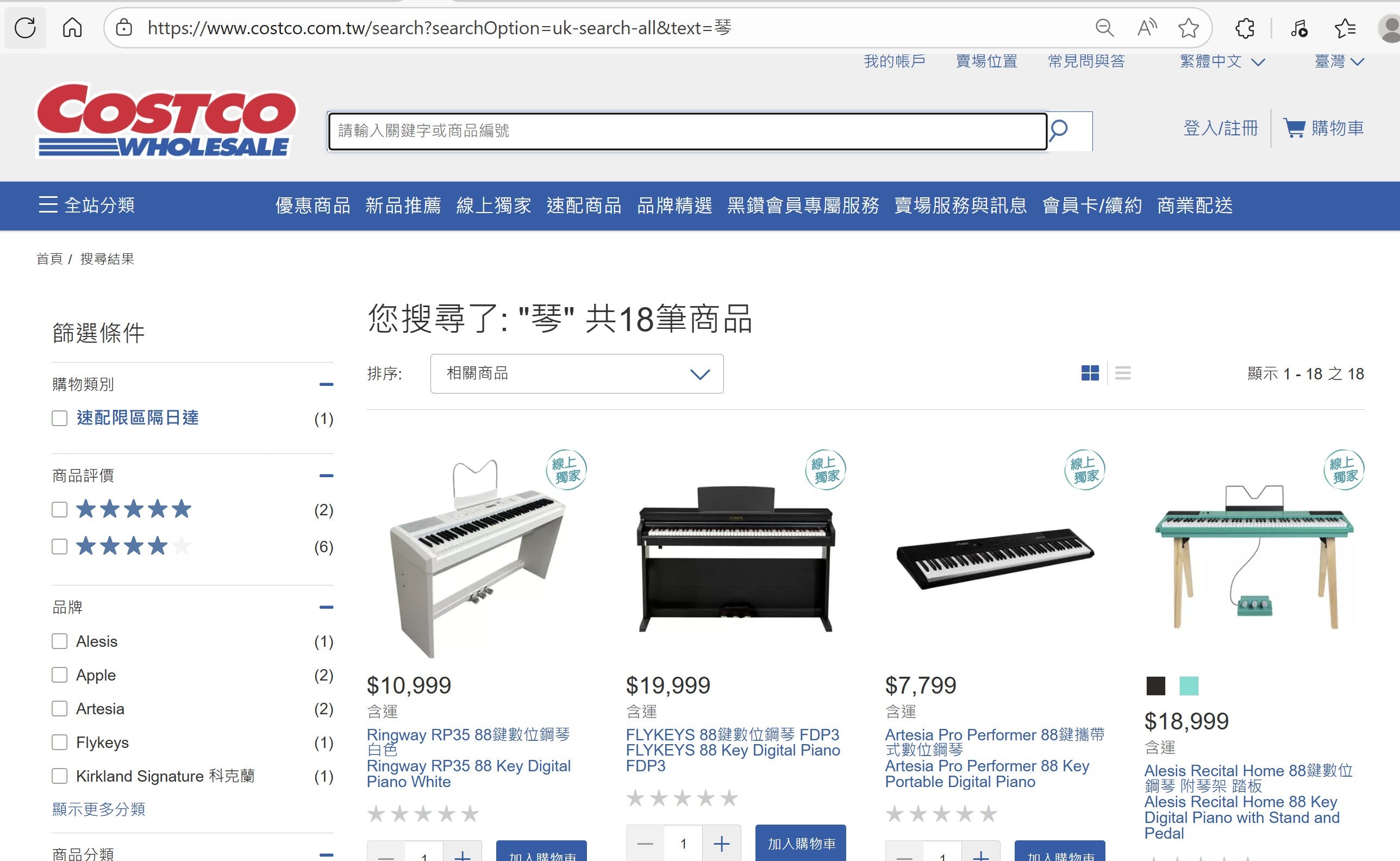 台灣好市多 + 亞斯頓鍵盤樂器